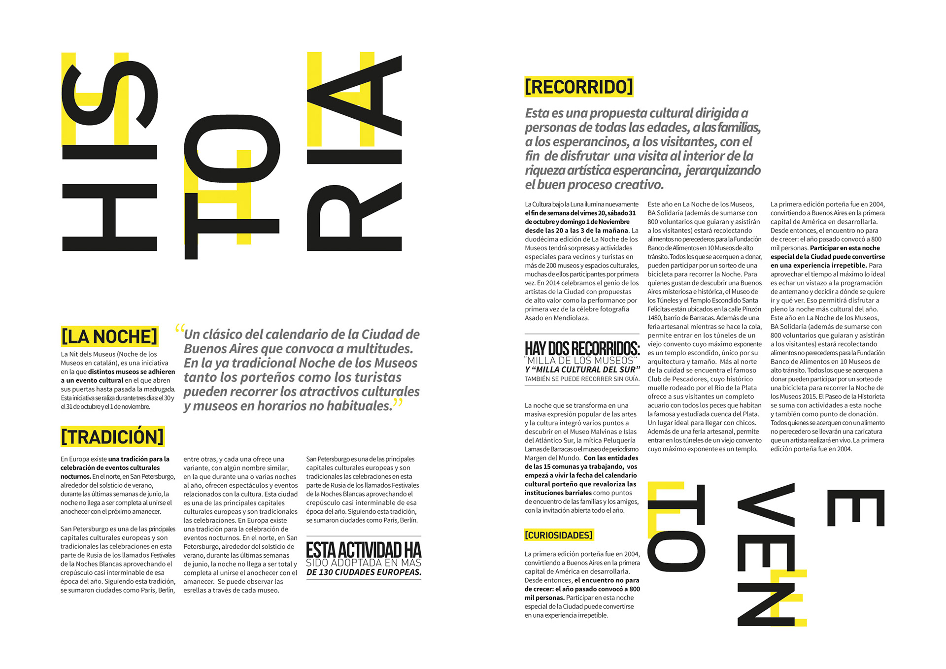 Se utilizará no mas de dos familias tipográficas, pudiendo hacer uso de todas sus variables, así como también la libre articulación de las variables espaciales, y cuerpo tipográfico. Cómo los casos anteriores se tendrá en cuenta la legibilidad del texto, su aspecto formal y el recorrido de lectura.